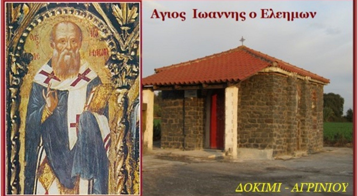 Εορτάζει ο Άγιος Ιωάννης ο Ελεήμων στις 12 Νοεμβρίου και το ομώνυμο εξωκλήσι στο Δοκίμι Αγρινίου, τιμά την μνήμη του. Σήμερα Τρίτη 11 Νοεμβρίου και ώρα 15.00 θα τελεσθεί Εσπερινός μετ’ αρτοκλασίας, ενώ αύριο Τετάρτη 12 Νοεμβρίου και ώρα 7:00 το πρωί θα τελεσθούν ο Όρθρος και η Θεία Λειτουργία.